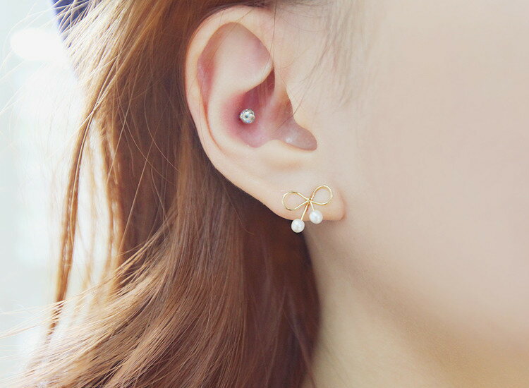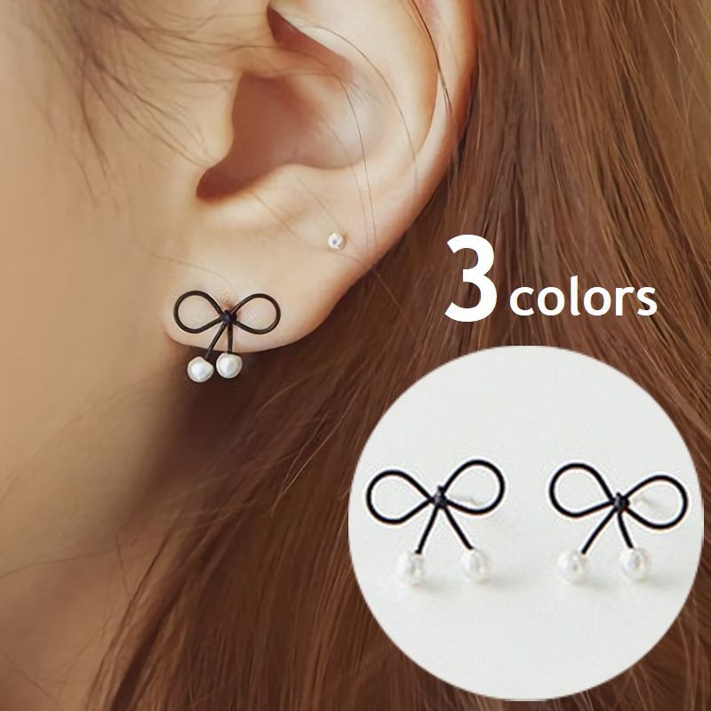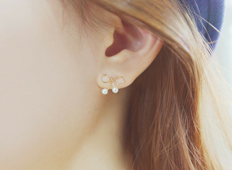 送料無料蝶結びピアス レディース ビジュー リボン ジュエリー アクセサリー キャッチ カジュアル CUTE イベント パーティ ヴィンテージ