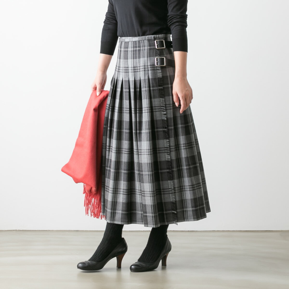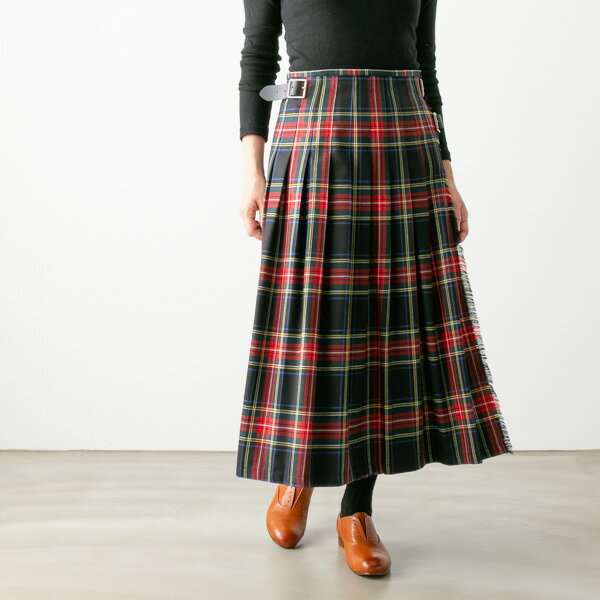 O'NEIL OF DUBLIN【オニールオブダブリン】Wide & Allover Pleats Kilt skirt With Wide Belt NOD0853 総プリーツ太ベルト付きキルトスカート レディース ロングスカート 巻きスカート ウール タータンチェック