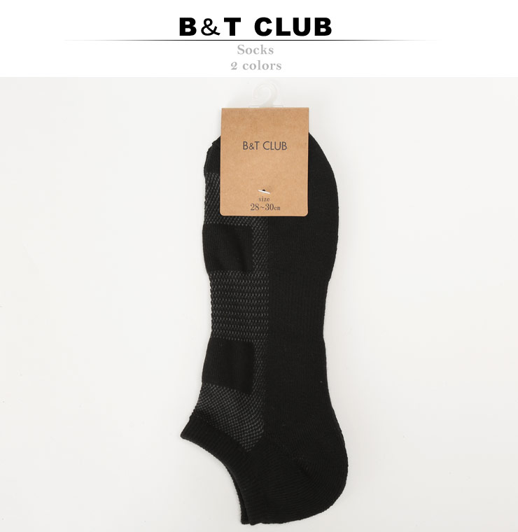 靴下 大きいサイズ メンズ ソックス アンクル丈 底パイル 無地 甲メッシュ グレー/ブラック 28 29 30cm B&T CLUB 大きいサイズメンズ靴下のサカゼン