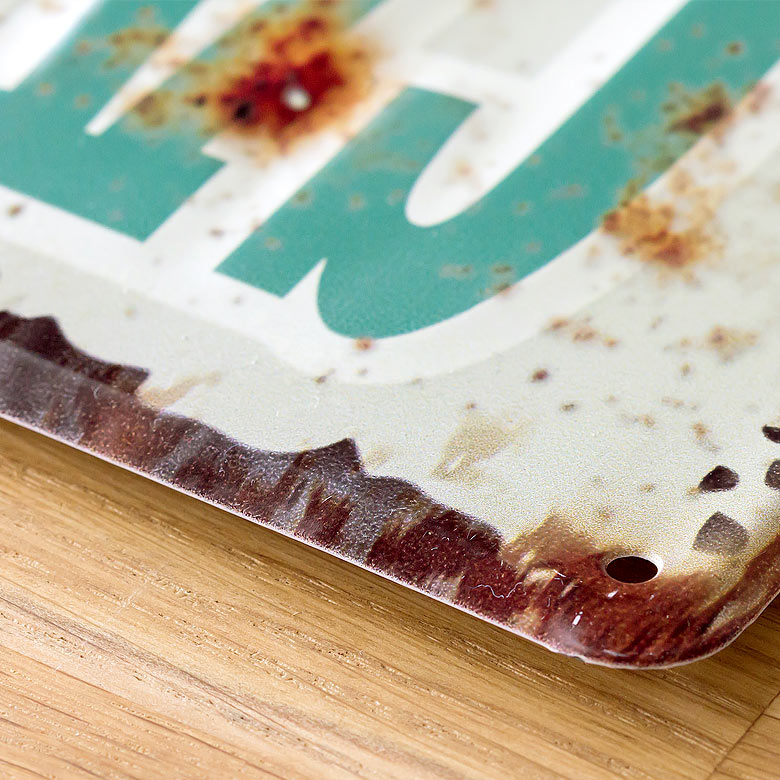 錆びをかけたようなダメージ加工で ヴィンテージ感アップ! アイアンシェルフとの相性も◎ 長く使ってきたような風合いを 演出してくれます。